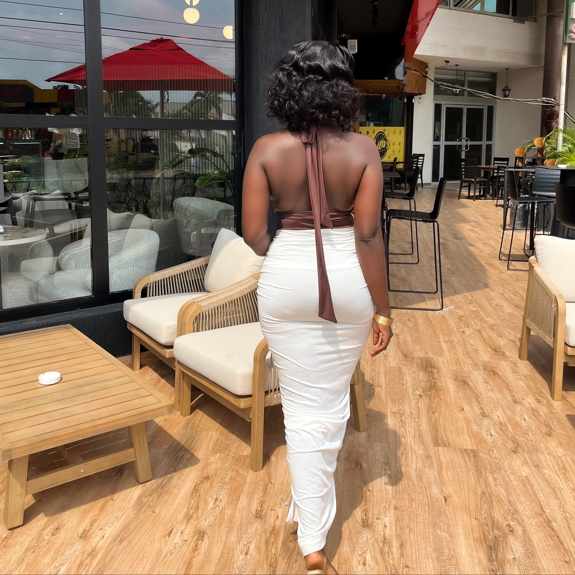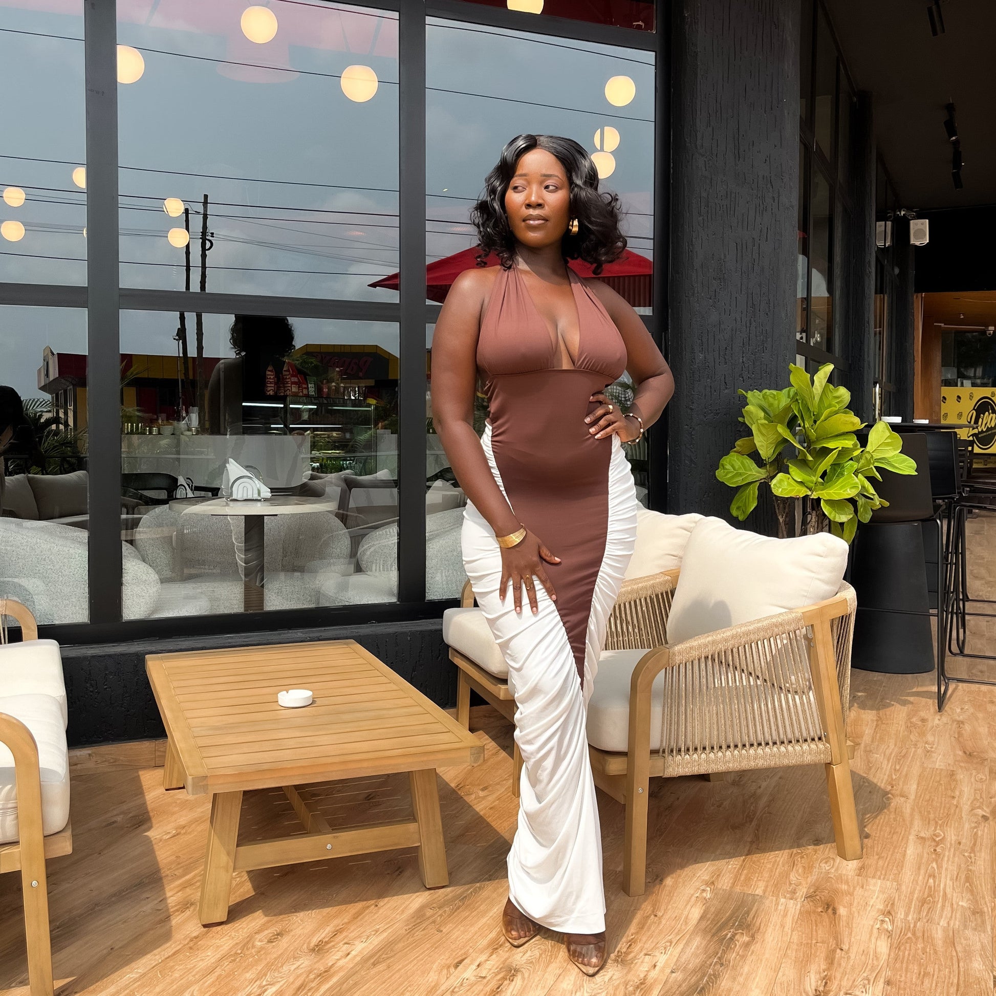 Step into standout style with the Ruched Patchwork Maxi Dress, where bold design meets body-loving curves. Made from a soft, high-stretch polyester/spandex blend, this neck-mounted, backless beauty is all about confidence, movement, and making your presence unforgettable.
