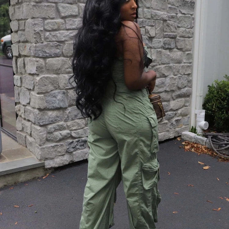 Get ready to turn heads with the Strapless Button Front Ruched Cargo Jumpsuit, where comfort meets fashion effortlessly. Ideal for those who love to make a statement while keeping things practical.